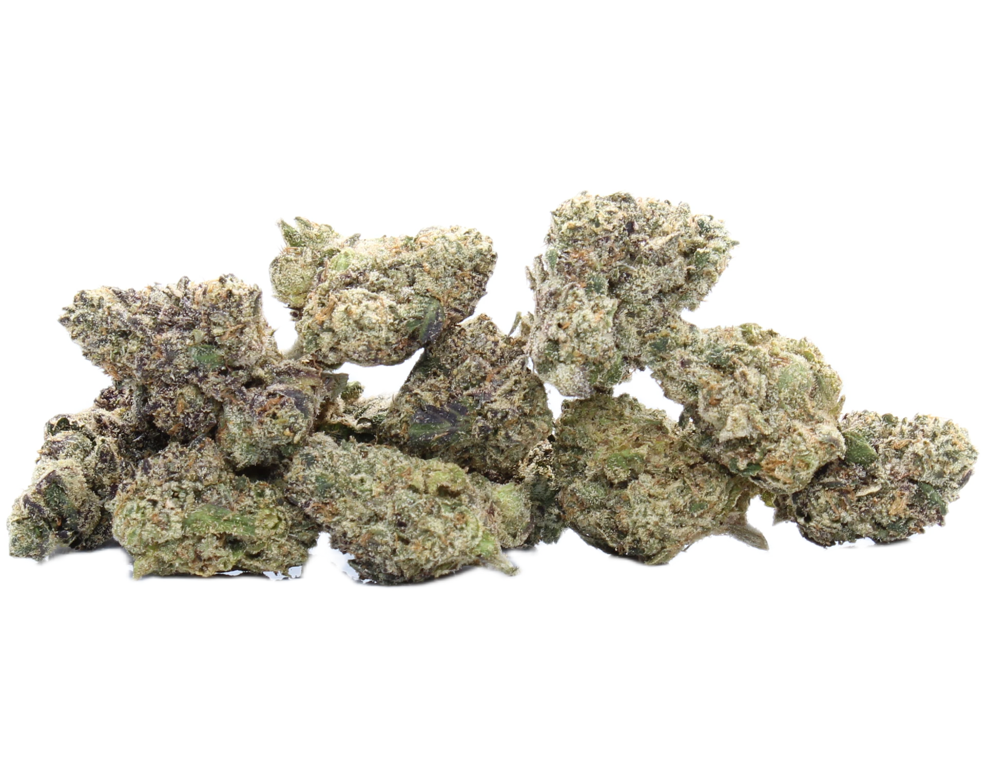 This strain brings the heat with a rich, gassy aroma and seriously dank vibes. The medium-sized nugs are a feast for the eyes: lush green with deep purple accents and a heavy dusting of trichomes that sparkle like they know they’re special (because they are).