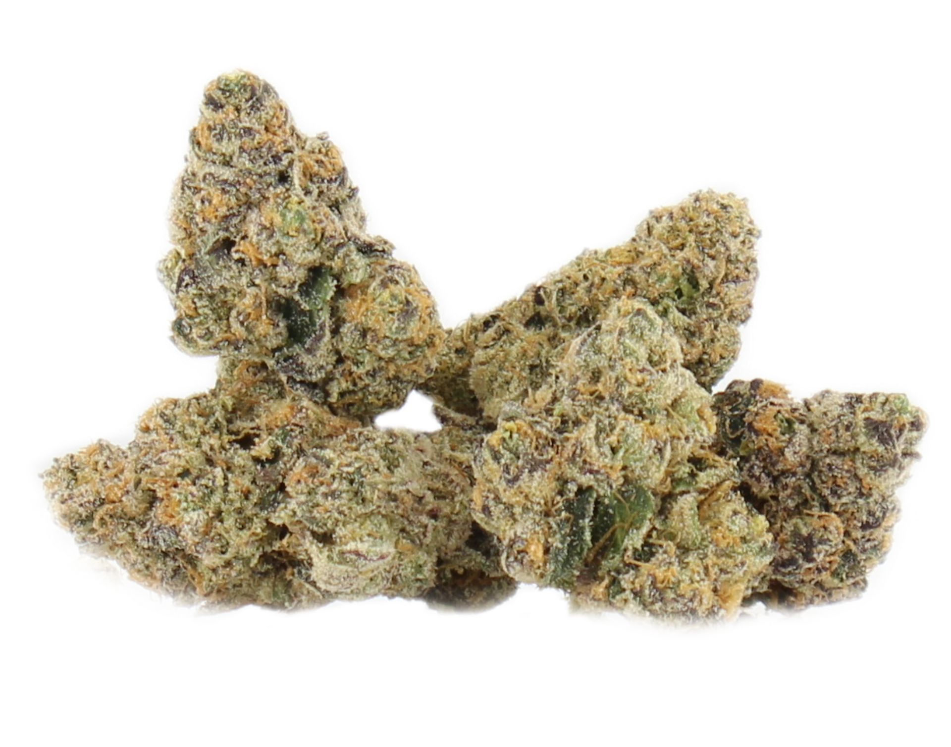 Mochi Gelato is a hybrid strain that instantly catches the eye with its dense, elongated spade shaped buds. The nugs show off deep olive green tones layered with rich purple undertones, thin red hairs, and a thick coating of frosty purple tinted white trichomes that give the flower a sparkling, premium look. It is the kind of bud that looks just as impressive in the jar as it does up close!